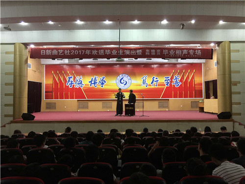 为丰富校园文化,欢送w66旗舰厅官网毕业生,建筑工程公司日新曲艺社团于6月17日晚在西校区3号教学楼报告厅举办了“德才兼备,莫之与京”相声专场演出。面向全校的员工和校外喜欢相声的人员作为观众,现场座无虚席。日新曲艺社元老级毕业生朱德京、陈德贝、聂兆丰参加此次演出。