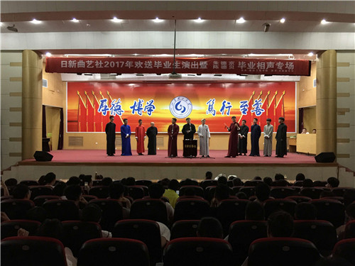 四年时光流逝,光影斑驳落地,风轻花落定,时光踏下足迹。送走了相声,迎来了毕业,日新曲艺社自成立以来一直带给观众震撼与喜悦。晚会足足演出了两个半小时,演员们表演十分卖力,观众的回应也相当热烈。当晚大部分观众是年轻人,以及一些小朋友,他们可都是“老曲艺迷”,不仅和演员上下呼应、热烈互动,而且有的段子虽然听了不止一遍,到抖包袱的时候依然笑得前仰后合。伴随着最后一段相声《朋友之间》,演出也接近尾声,此次演出完美谢幕。