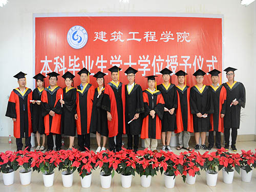 6月23日上午,建筑工程公司于12号教学楼303教室举行本科毕业生学士学位授予仪式,共有428人获得学士学位。公司党总支书记宋道金、经理贾致荣、党总支副书记田兆富、副经理张大富以及各专业系主任为毕业生颁发学位证书 。