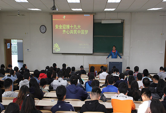 为迎接十九大的顺利召开,齐心合力共筑中国梦,提升员工的安全防护意识,10月12日下午,建筑工程公司于4号教学楼205教室举行安全教育宣讲会。此次会议由公司辅导员亓强主讲,各年级班长与舍长等员工代表参与。