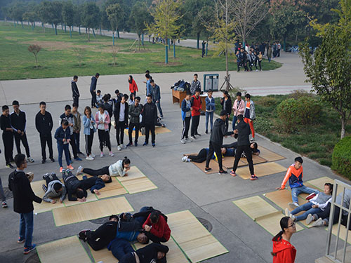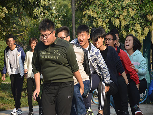 此次活动共有三个环节:摆姿势猜字游戏、“六人七足”比赛及“我说你做”主题趣味游戏。比赛开始前,相关负责人宣读游戏规则及评分标准,并希望参与者能够积极参与活动,在游戏过程中增强社会责任感。在摆姿势猜字游戏环节,各队伍一人抽取文字,五人摆出相应文字,此环节紧扣“承担社会责任”为重点,以集体活动为主要形式,来达到提升社会责任感的目的。随后,在“六人七足”比赛中,各团队严格按照游戏要求不断调整战术,力求以最快速度到达终点。通过此游戏,有利于增强同学们的团结意识,加强团队协作能力,从而使大家更好地融入集体,增强社会责任感。第三环节以“集体责任感”为主线,以“我说你做”主题趣味游戏为主要形式,让同学们在亲身参与中不断增强集体责任感。在此环节中,根据抽取的指定动作,各团队积极制作方案,齐心协力在指压板上完成指定动作并成功坚持10秒钟。