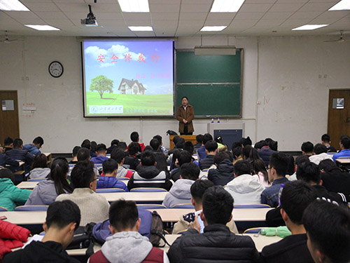 最后,他向同学们发起提问,问及同学们宿舍被盗或者财产被骗的相应处置方法,多数同学认为应当立马报警或向公司保安科报案,他对此表示肯定并加以补充,面对警察询问应当及时回答,积极反映有关情况,提供相应线索以协助尽早破案,对于受骗案例,应立即保存证据,以供警方调查。他向同学们强调,一定要树立安全第一的思想,服从安全第一的原则,在同学们热烈的掌声中,宣讲会正式落下帷幕。