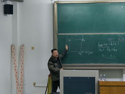 在培训开始之前,王老师示范如何正确读数,并询问了同学们有关测量理论知识的一些问题,之后针对同学们的具体情况展开了培训。此次培训,王老师以水准测量为主题,将培训内容分为四个方面进行详细讲解:一、讲解了地面点的高程,前视点与后视点的区分;二、水准测量原理,以及测点高程公式;三、介绍了测量仪器的构造,以目前常用的S3水准仪为例,同时也讲解了如何正确使用仪器;四、王老师着重讲解了测量数据如何处理,以及记录表的正确填写。最后王老师将时间交给同学们,鼓励同学们提出自己的疑问。同学们都十分积极,踊跃提出自己的问题,王老师一一细心解答,并为同学们详细解答了关于水准仪测量仪器原理和计算的有关问题。王老师和同学们亲切交流,教会同学们如何正确使用测量仪器。