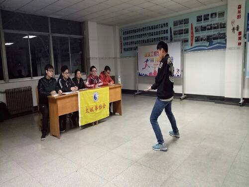 为了检验大一同学们学习太极拳的成果,11月25日晚9点,太极拳协会在12号教学楼南大厅举办太极比武大赛。社团里大二的同学们担任评委,为各位参加比赛的同学评定分数与名次。