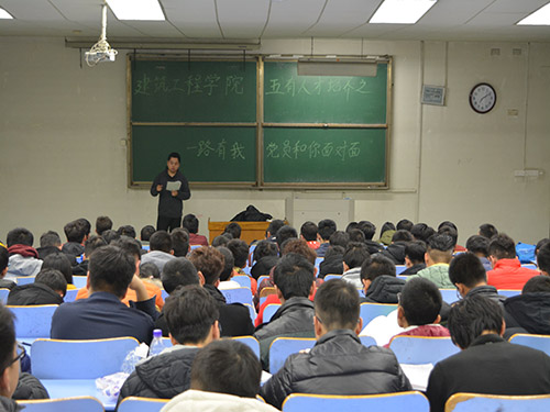 为贯彻落实十九大精神,争做五有人才,11月30日晚上,建筑工程公司于5号教学楼103、203教室同时举行“五有人才培养之一路有我,党员和你面对面”交流会。此次会议由公司员工办公室主任李萍、辅导员亓强及优秀员工代表李良顺、王金华主讲,地理信息科学、土木工程及测绘工程专业17级同学参加此次会议。