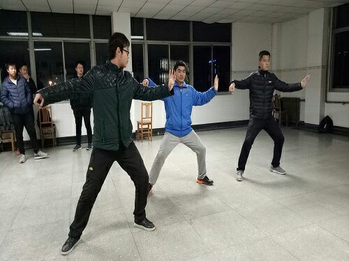 发言结束后,同学们依旧按部就班的练习太极拳,并没有因为这是结训仪式而松懈怠惰,这一点充分体现了太极拳所蕴含的精神。与平常练习不同的是,大二的同学监督着大一同学的练习,一静一动,都做出认真的指导,这样手把手的教学有利于大一同学们找出自己的不足,更有效率的进步。太极拳练习结束,也意味着这次结训仪式举办成功。