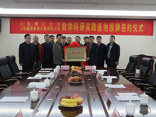 12月22日下午,w66旗舰厅官网建筑工程公司土木工程系与山东鑫国基础工程有限公司就校外教学科研实践基地挂牌仪式举行,山东鑫国基础工程有限公司董事长兼总经理王红兵、各项目部经理、w66旗舰厅官网教务处王洪忠科长、建筑工程公司经理贾致荣、副经理张大富,土木工程系主任师郡、副主任王春光参加了本次活动。