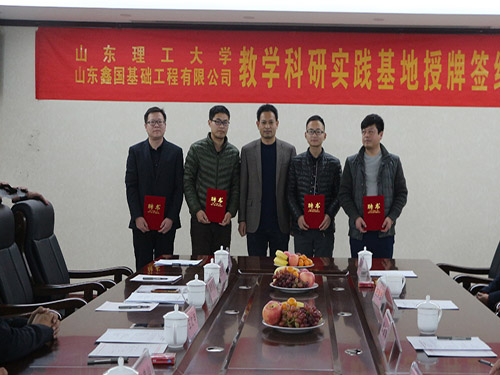 会上,山东鑫国基础工程有限公司董事长兼总经理王红兵对公司的现状以及对未来的展望与发展进行了介绍,贾致荣经理则从公司专业设置情况,多途径促进校企合作实践平台使用,校城融合的背景校企合作发展等方面进行交流。会上,双方签署了合作协议书,并进行教学科研实践基地揭牌仪式,最后为贾致荣经理为四位企业导师颁发了聘书。
