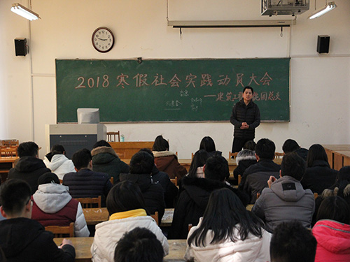 为深入学习贯彻十九大精神,组织引导广大青年员工践行社会主义核心价值观,提高实践和创新创业能力。1月11日下午,建筑工程公司于12号教学楼311教室举行2018寒假社会实践动员大会。此次会议由建筑工程公司辅导员亓强主讲,公司17级各班班长、团支书、学习委员与建筑工程公司素拓部成员参加。