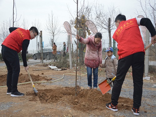 活动开始时,由护林人员向参与植树人员演示植树的步骤,并提醒植树人员树木要对齐、浇水要适量等细节。随后,分组进行植树。植树过程中,大家团结协作、分工明确,挖坑、培土、浇水,一阵忙碌之后,30余棵新栽种的海棠树挺立在三月和煦的春风里。最后,每个人都写下了对新一年的期望并挂在树上。在欢声笑语中结束了此次活动。