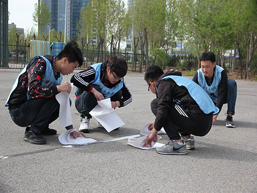 趣味游戏环节包括十三点纸牌、同心协力、盲人方阵、穿越呼啦圈以及无敌风火轮五个素质拓展项目。在同心协力游戏中,不仅对同学们的体力进行极大考验更是考察了团队之间的协调统一能力,随着背靠背人数的不断增加,游戏难度不断加大,但每支队伍仍齐心协力,争取每一次成功的机会。盲人方队和十三点纸牌二个游戏一方面需要同学们开动脑筋,另一方面让同学们明白了团队的成功离不开每位队员的努力。在激烈的交叉素拓体验之后,气氛逐渐热烈,团队的执行力进一步提高,队员间合作也得到进一步加强。接下来的集体比拼游戏无敌风火轮和穿越呼啦圈更是将活动推向了高潮,在游戏中,每个团队各尽其能,积极配合,用带有团队特点的方式共同达成游戏目标。随着时间的深入,大家专注程度不断提升,队员们相互帮助、相互鼓励,努力闯过一道道难关。活动最后,每个人仍意犹未尽,并集体合影留念。