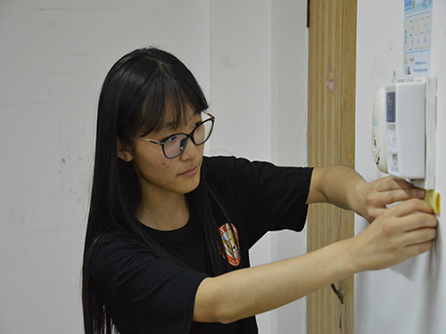 此次活动意在方便同学们的日常生活,更好的为同学们服务。活动是通过在教室张贴温馨提示图标让同学们正确了解教室内开关对应的灯和风扇的位置。温馨提示以不同颜色、形状的图标区分对应位置电风扇以及电灯的开关。权益与调研部人员结合每个教室的实际情况,为每个教室设计了适合的图标提示。