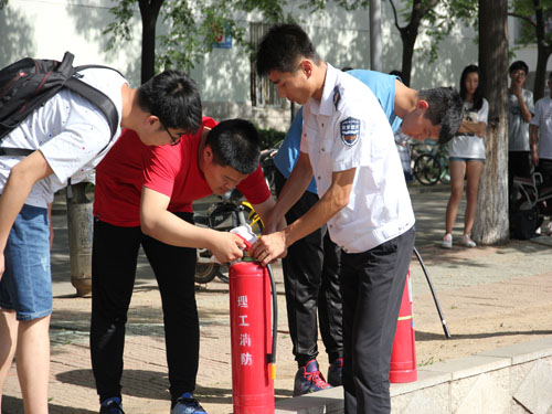 宣讲会结束后,李雷雷于第四体育场内向同学们展示了灭火器的使用方法,并亲自教授同学们使用。紧接着,同学们在21、22号宿舍楼进行了火灾演练,随着清脆的哨声响起,同学们井然有序的迅速逃离现场,充分展现了他们所学习的火灾逃离技巧。最后,亓强对此次演练进行了认真地点评,他强调,火灾逃离演练是对同学们生命安全的负责,他希望同学们在今后的生活中树立较高的消防意识,做好消防防范工作,做到人走电断。