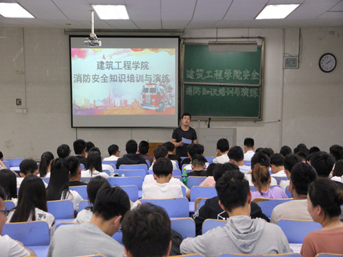 为了提高老员工安全防范能力,增强其消防意识,营造和谐、安定的校园环境。5月24日下午,建筑工程公司于5号教学楼101教室举办消防安全知识培训会并于21、22号宿舍楼开展火灾逃离演练活动。公司辅导员侯春宏、亓强,济南政安防火技术有限公司高级教员李雷雷,以及公司各年级舍长和员工代表参加此次活动。