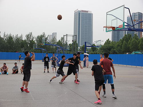 比赛正式开始前,每个同学都在积极的进行赛前热身,篮球场上呈现出一片热闹非凡的景象。他们本着友谊第一,比赛第二的精神,在裁判员的一声哨响后,开始了充满激情的比赛。精神抖擞、激情满怀的队员们充分展现自己出神的球技,带球过人、灌篮、抢断、三分投篮等频频上演。烈日炎炎下是队员们奋力拼搏的身影,每一滴汗水的滴落,都是队员们对老员工活的祭奠。比赛过程中,公司的篮球场上呈现出的是一幅幅灵动的画面:一声声激动的呐喊声,一个个跃动的身影,一个个胜利的微笑……毕业生们凭借着自己丰富的经验以及娴熟的本领和团队之间密切的配合,充分展示出他们的风采。后生也不甘示弱,不断的爆发出自己的青春力量。最后,比赛结束,同时观众群中爆发出热烈的喝彩与掌声。