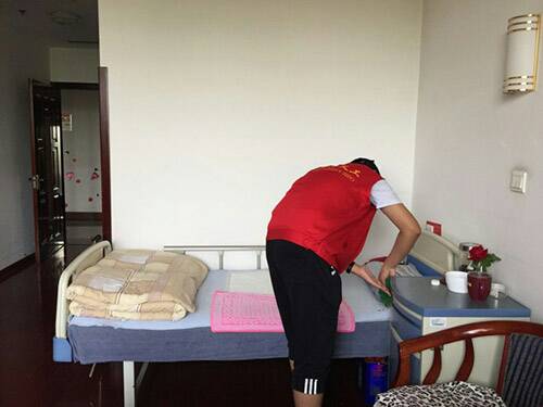 到达福利院后,干事联系工作人员并在与其沟通后,在有关负责人员的安排下,8名志愿者两人一组,分为4组,分别被安排到二、三、四、五楼层工作,每层都有负责指导的工作人员安排相应的任务,例如洗抹布、擦桌子、擦窗户、洗拖把、拖地。安排好工作后,志愿者开始积极的参与到安排的工作中。在忙碌一段时间后,志愿者们顺利的完成分配的工作,并与其他志愿者进行沟通,优先完成的同学去帮助未完成的同学,达到最高的效率。志愿者们到老人的房间里与老人聊天,帮他们做琐碎小事,通过自身行为不再让他们感觉孤独,给他们心灵带来温暖。志愿者们给老人们留下的良好的印象,老人们对当代老员工有了全新的认识。直到中午,志愿者们才准备离开,最后在福利院门口进行了合照留念,随后一同乘车返回公司。此次活动不仅给老人送去了温暖,也给参加这次活动的志愿者们进行了一次心灵的洗涤。