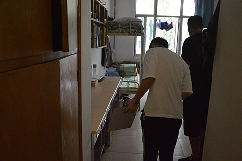进行此次卫生检查活动的老师从一楼开始,对每一间新生宿舍进行逐一检查并打分。此次卫生检查的重点包括:员工宿舍内是否有存放违章电器和易燃易爆等物品、是否有饲养动物行为、物品摆放是否整齐、厕所卫生间是否有异味、阳台及门口垃圾是否及时处理等情况。与此同时,随行的辅助检查人员仔细了解了每个寝室内桌椅板凳的损坏情况并及时做出相应记录,以便在第一时间内对毁坏的桌椅进行整修与更换。