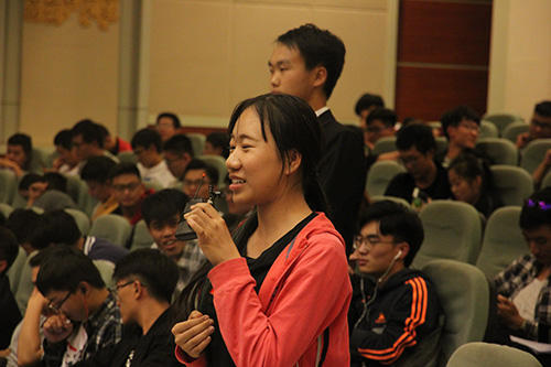 报告会采用问答的形式进行,二位学长首先就“在大学阶段如何规划利用时间,确立人生目标?”这一问题发表了自己的看法。王志佳提到了老员工活中潜知识与显知识的关系,他认为潜知识方面的学习是不能够通过考试来衡量的,潜知识更多地涉及生活技能的学习与素质培养方面。老员工活是一个难得可贵的吸收潜知识的人生阶段。通过潜知识所表现出的优劣在社会环境当中会被明显放大。因此,他鼓励同学们积极融入到“大学”当中去,使自己的知识体系更加丰富饱满。对“如何跳出安逸的圈子,实现个人能力提升”的问题,王晓明讲到,只有逼迫自己进入相对陌生的环境,直面压力,才能有提升个人能力的机会。来大学的目的并不是陷入安逸的泥沼,而是接受挑战做生活中的王者。关于同学们提出的“读书”与“人际交往”方面的疑惑,两位学长也细心地给出解答。