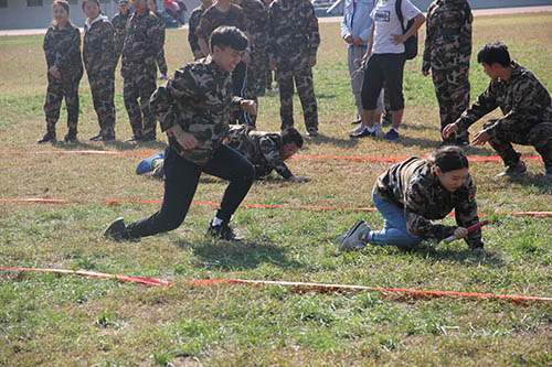 比赛设置了匍匐草地、线上飞索、军令急报和时代冲锋四个比赛环节,其中有考验团队之间策略协作的团建游戏更包含考察同学们涉及时政方针、革命先烈事迹等知识内容的竞答环节。在主持人宣布本次比赛的规则之后,一哨令响,比赛正式开始。在匍匐草地环节,同学们身穿军训迷彩服,比赛场地尽可能地还原革命先烈当时的艰苦环境。此环节采用团队接力的方式,成员按照团队分工,手持接力棒按规定路线完成草地匍匐往返。对于女生来讲,这个环节是有一定难度的,w66利来旗舰厅的男生深度展现绅士风范,尽可能地安排女生完成较容易的接力路程,团队之间相互协作、有条不紊地出色完成这个环节。在“军令急报”知识竞答环节竞争更是火热,公司同学积极思考、开动脑筋,认真谨慎地给出正确回答。经过公司各参赛同学的团结协作,两支参赛队伍均取得较好的成绩。