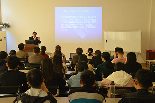讲座开始前,杨志刚首先向在座的各位说明了此次讲座的大体内容,紧接着他向大家详细介绍了担任此次讲座主讲的何红锋教授,随后讲座正式开始。此次讲座上,何红锋主要讲解了工程发包中政府采购法与招标法冲突的根源及解决思考的问题,并对这一问题的相关内容进行了细致的描述与解释。他先重点对我国十年来始终无法加入《政府采购协定》的情况以及我国加入《政府采购协定》谈判的难点做出了具体的分析。随后他就政府采购法与招标投标法所存在的冲突与在场各位分享了自己的看法,在此过程中他也讲道,由于两法所调整社会关系的角度不同,在适用过程中很容易发生交叉和冲突,会给实务操作带来诸多困惑,因此他对两法的冲突和适用进行了全面的梳理和分析。最后,他通过对几个典型冲突问题案例的分析与讲解从几个不同角度说明了问题的解决方案,这也引起了老师们和同学们的思考。