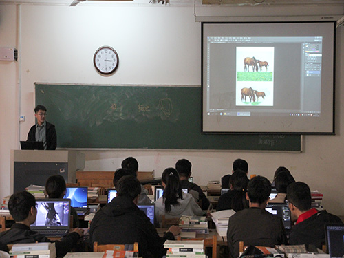 首先潘立志主要就图层的设置和文字样式的选择等问题进行讲解,在讲解过程中,他采用特点鲜明的素材进行实际操作,使同学们对于软件的使用有更深刻的印象。随后赵钰钰重点介绍了软件菜单栏中各工具选项及其使用方式并通过操作演示的方式更直观形象地展示各工具选项的功能。
