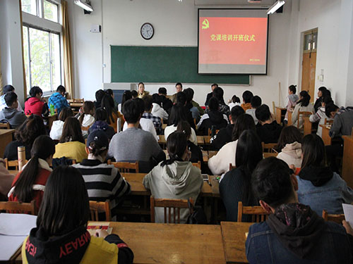 开班仪式由王延深主持。会议伊始,赵峰峰宣读此次培训班的安排并对人员进行分组并确定每组组长。她提到,此次培训班内容丰富,分为理论讲授、主题实践、分组讨论交流三种形式,可以有效的调动同学们自主学习的积极性。随后,宋道金做动员讲话,阐述培训班的目的和意义。他讲到,作为一名入党积极分子,要深入的了解中国共产党,学习党的理论、路线和方针政策,并继承和实践党的优良传统、优良作风,认清作为党的一份子肩负的历史使命的过程。接着,他强调了培训班是党员培养过程中必不可少的一部分,通过集中教育,能让他们发现自己的不足,从而进行自我批评,自我改进。最后,王延深对此次党课开班仪式进行总结,希望同学们珍惜机会,严格遵守培训班的纪律,切实把理论知识内化成自己的共产主义信仰,用共产党员的标准严格要求自己,约束自己,锻炼自己,早日成为政治方向的标杆,学习中的楷模,生活中的表率!