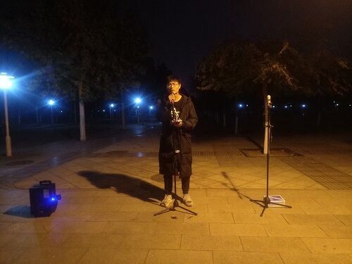 活动开始前,梦想文艺社的成员们开始进行组装仪器、调节音量等准备工作。活动正式开始后,主持人对此次活动进行简单的介绍,此次活动采用现场报名制,每一个喜欢唱歌的同学都可以主动上台表演。在主持人进行简单的介绍后,主持人首先带来自己的拿手歌曲《追梦赤子心》,热血的演唱瞬间点燃了现场的气氛,吸引周围同学踊跃参与此次活动,活动周围开始有聚集前来观看的同学。第一首歌唱完后,一位现场观众主动上台表演,带来歌曲《年少有为》,副歌部分感情陡然上扬,勾起人们心中许多美好的回忆,前来观看表演的同学越来越多。在第一位同学唱完后,一些路人也纷纷勇敢地加入了此次演出,他们唱了《光年之外》、《肆无忌惮》、《沙漠骆驼》等几首最近比较热门的歌曲。一首首优美的歌曲响起,美妙的歌声久久萦绕,动听的旋律盘旋在心头,令人沉醉。同学们抛开烦恼,放声歌唱,享受着美好的时光,体育场上响起了一首又一首优美的歌曲,里面还夹杂着几首英文歌曲,让大家体验到一种独特的风情。晚上9点,所有演唱结束,伴随着一片欢声笑语,此次活动顺利结束。