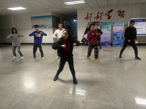 此次舞会由梦想文艺社团员曹慧敏领舞,舞会内容以舞蹈学习为主,课程分为基础课和提高课,根据不同舞蹈基础的员工进行的不同层次的教学。在舞蹈训练中,学员们情绪高涨,主动性极高,不仅曹慧敏指导认真,学员们的学习也是一丝不苟,引得大量围观群众前来观赏拍照甚至加入舞蹈的队列中,培训现场热情膨胀、到处充斥着青春的气息,场面十分融洽。在领舞者详细的示范和热情的鼓舞下,刚加入现场的围观群众们也渐渐舞动起来,现场气氛也随着律动的音乐逐渐被带动起来。虽然舞姿并不规范,但同学们都尽情地享受着舞蹈这门艺术带来的快乐以及家一般的温暖。