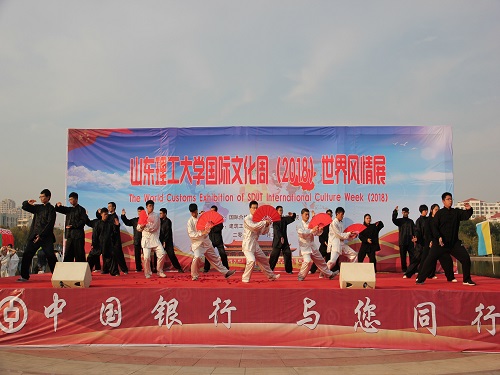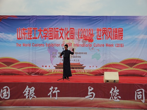 风情展伊始,w66旗舰厅官网纪委书记衣玉琛在开幕仪式上发表了热情洋溢的致辞。他充分肯定了此次国际文化周的重大意义,通过开展形式多样的活动项目,促进丰富多彩的异国文化与底蕴深厚的中国文化相互交融,进一步繁荣w66旗舰厅官网的校园文化。在书记讲话后,此次风情展正式开始,各国职工们都准备了体现本国文化风情的节目表演,唯美的俄罗斯芭蕾舞,热情的吉尔吉斯斯坦民族歌曲、动感的韩国流行舞蹈等节目把现场气氛带入高潮。在热烈激情的歌舞过后,日新曲艺社王林炟带来相声快板表演《小坡摸鱼》,他说学逗唱,幽默风趣的表演令台下的各国观众捧腹不止。风情展最后,太极拳协会带来表演《太极扇》,他们的表演刚柔并济,英姿勃发,举手顿足之间,体现出太极扇法的柔和之美。