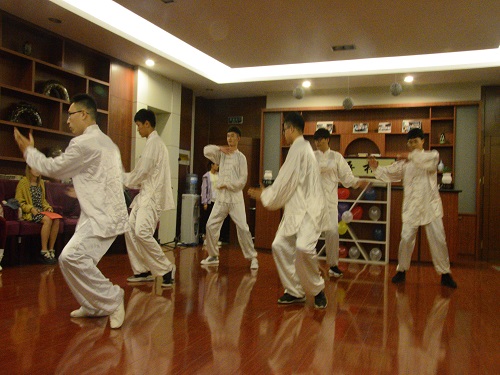 为向别国留学同学展示中国传统文化——太极拳,并推广太极拳。太极拳协会受邀于9月27日下午4点,在老员工事物中心106室参与了“中外汉语桥”活动,部分职工协会老师和职工参与了此次活动。