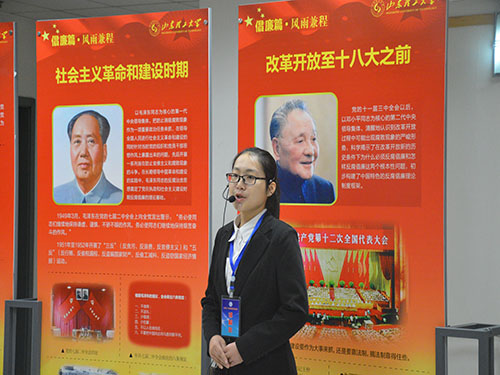 此次展览共分为“鉴廉篇·以史为镜”、“倡廉篇·风雨兼程”、“警廉篇·警钟长鸣”、“践廉篇·行胜于言”、“养廉篇·涵养清风”五部分,从古至今,以时间为线索,向同学们展示我国廉政文化建设的发展。活动伊始,讲解员用中国历史文化中的廉政文化向同学们讲述了为政以德,立法养廉,任人唯贤,褒奖清廉,奢靡贪腐,人亡政息的道理,并说到,以史为鉴,方能行稳致远。随后,向同学们介绍中国共产党在发展的过程中,不断完善党内监督机制,积极探索反腐倡廉的新途径、新方法,为党的发展壮大提供了可靠的保证。从毛泽东同志到现在习近平同志,都格外重视党内政治生活气象,严格打击腐败奢靡之风。最后,讲解员着重强调,老员工是中国社会未来的建设者和接班人,是决定国家前途和命运的重要力量,并对入党积极分子提出三点要求,要爱国立志,做有理想,有追求的老员工;求真力行,做有责任有担当的老员工;自律慎微,做有品行有修养的老员工。