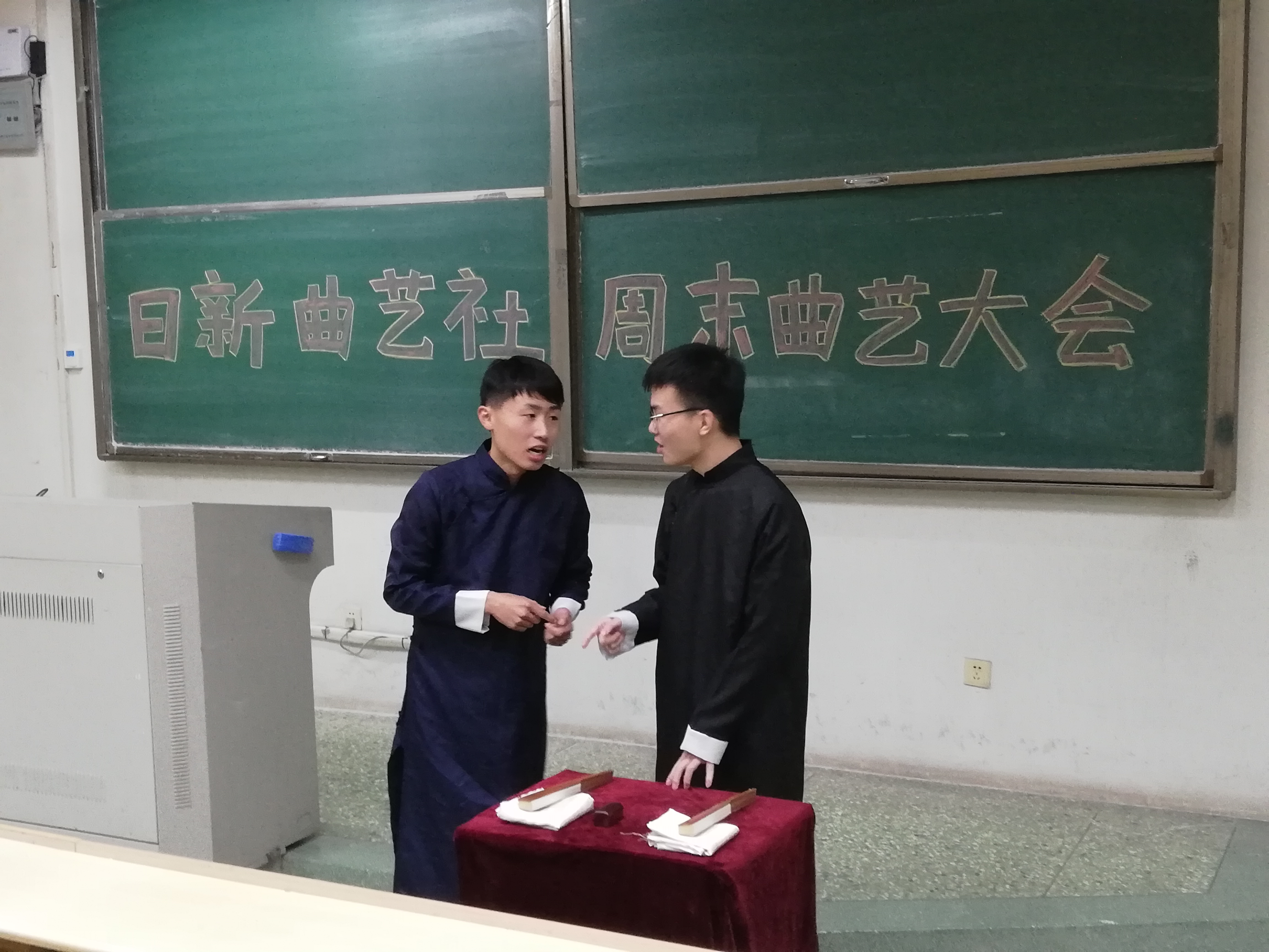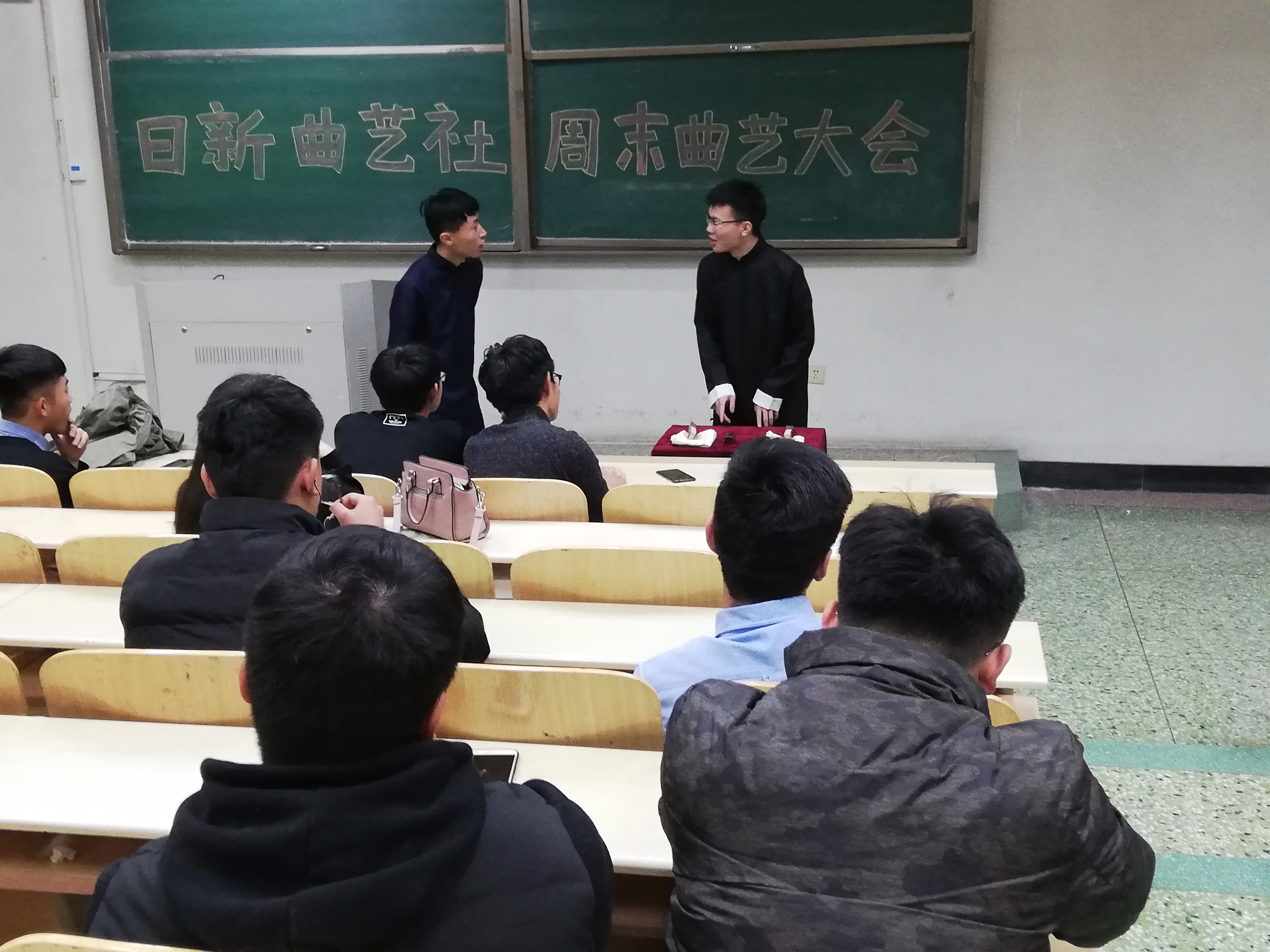 为丰富校园文化,传承经典曲艺文化,充实同学们的课余文化生活。11月17日晚,日新曲艺社在5号教学楼308教室举行了周末曲艺大会。这次曲艺大会的主要表演者是日新曲艺社的成员,很多曲艺爱好者都参与了此次活动。