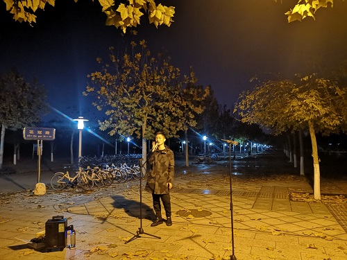 此次活动旨在以歌会友,观众中有想唱歌或者跳舞的,可以依次进行报名表演。活动一开始,由梦想文艺社成员带来一首《男孩》拉开序幕,优美的旋律、动听的歌声吸引着来往人群停留驻足,在享受着动听歌声的同时也点燃了围观群众的激情,大家开始踊跃报名并参与其中。然后,同学们带来《可不可以》、《起风了》、《你就不要想起我》等流行歌曲,歌手们将自己真挚的情感投入其中,演唱过后,大家也不忘一起细心交流最近比较流行的歌曲以及自己唱歌的技巧。活动中期,一位路人歌手带来邓紫棋的《光年之外》,她的歌声高亢洪亮,动情演绎,瞬间将现场的观众带入氛围中,赢得了现场观众的阵阵掌声。随后,围观群众越来越多,活动进入了高潮。