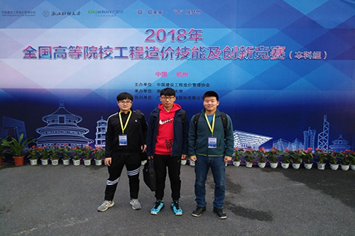 2018年11月17日,第四届全国高等院校工程造价技能及创新竞赛在杭州举行,本次竞赛是由中国建设工程造价管理协会主办、广联达科技股份有限公司协办、浙江财经大学承办的国家级比赛,来自100多所高等院校的学子同台竞技,建筑工程公司工程管理专业2015级白金磊、刘东阳、姜涵钊同学在孙广伟老师、刘爱芳老师的指导下经过激烈角逐,荣获创新思维专项一等奖、团队三等奖。