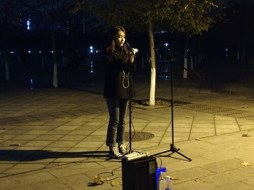 活动伊始,主持人简单介绍此次活动的基本概况,每一个愿意唱歌的人都可以获得这个展示自己的机会,并且现场报名就可以上台歌唱。在主持人对梦想文艺社进行简单的介绍之后,主持人抛砖引玉,首先演唱了《七月上》、《刚刚好》、《沙漠骆驼》等流行歌曲,歌曲的旋律优美动听,吸引路人驻足观看,周围聚集了不少同学。一位路人勇气可嘉,主动要求上台演出,他用真挚的感情演唱了《温柔乡》,动听的旋律盘旋在心头,久久萦绕,令人沉醉。在主持人的热情邀请下,路人纷纷积极参与其中,勇敢的加入演出,演唱了《小幸运》、《走马》、《新不了情》等歌曲,或优美动听,或感情真挚。随后,报名上台表演的人络绎不绝,其中一位男生带来《海阔天空》和《富士山下》,用流利的粤语和充沛的感情调动了现场的氛围,为此次活动带来了别样的惊喜。最后一位男生演唱了传统北京小曲《探清水河》,婉转细腻娓娓动听,将中国传统文化融入校园生活中,增强了公司的文化氛围。至此,此次活动正式结束。