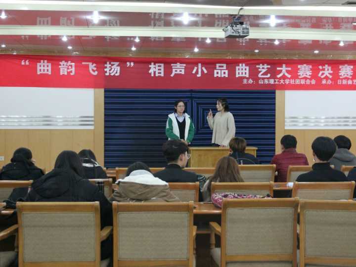 为丰富校园文化,传承经典曲艺文化,充实同学们的课余文化生活。11月22日晚,日新曲艺社在鸿远楼一楼报告厅举行了“曲韵飞扬”相声小品大赛。这次曲艺大会的主要表演者是校园中的优秀相声小品演员,很多曲艺爱好者都参与了此次活动。