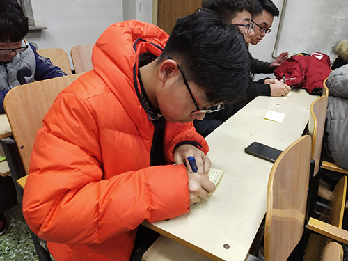 活动伊始,相关负责人向在场的每位同学分发了一张便利贴纸并告诉同学们这段国家记忆值得每一个人铭记,他希望大家可以在纸上写下自己的心声来表达对南京大屠杀遇难同胞的深切缅怀之意。紧接着,同学们一起观看了《南京大屠杀》和《南京南京》的剪辑影片,影片记述了日军当年在南京的暴行,再现了中华民族那段悲痛的历史。负责人表示看影片旨在提醒广老员工勿忘历史,坚决拥护党的领导,主动肩负起民族复兴的伟大历史使命。在此过程中,同学们都十分专注地观看影片,纷纷写下自己观看完影片时的感想。观看结束后,同学们也纷纷表示要牢记历史并以此为戒,紧跟时代步伐,昂首阔步,为实现中国梦而努力奋斗。随后,在场的各位全部起立并在相关人员的带领下对在南京大屠杀中遇难的同胞进行了庄严的默哀,默哀完毕后,同学们依次地将自己写的便利贴纸贴在黑板上并在黑板上签名。此外,他们按照负责人的要求在图书馆南草坪摆出“12·13”以及数字“81”等字样进行大合照以纪念这个特殊的日子。