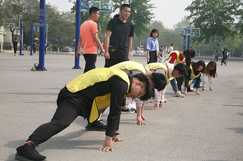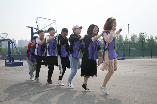 活动伊始,活动负责人将人员集合,随机将其分为三组,要求每组选出一名队长,并设计团队队旗、想出团队口号。紧接着,他向大家介绍了此次活动的流程,并对游戏规则进行简单的说明,大家仔细听取游戏规则,认真准备,很快进入了状态。随着裁判的一声令下,比赛随即开始,大家争先恐后,积极参与,比赛场面格外激烈。其中,“单脚火车跑”游戏最能体现出参与人员的合作能力,游戏中,一个小组的成员们紧密相连,只有相互信任,才能又快又稳地完成游戏。“七彩连环炮”游戏更是将活动推向了高潮,一阵阵被压爆的气球声,让活动气氛愈加浓厚,同学们参加活动的积极性也愈加提高。活动最后,负责人将时间进行了结算,对用时最短的队伍给予了表扬,对用时最多的小组也进行了平板支撑的惩罚。