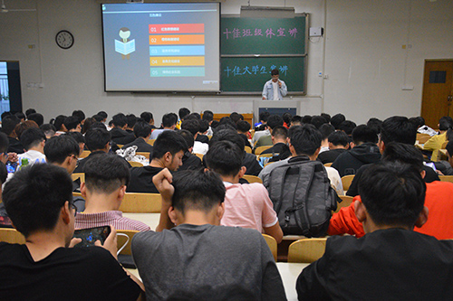 会议伊始,梁友波向同学们介绍了此次会议由十佳老员工宣讲和十佳班级宣讲两部分组成并表示此次会议旨在是同学们明确目标并进一步加强各班级的凝聚力。紧接着,曲明军和华磊进行了宣讲,他们都提到如何让自己变优秀的问题,他们表示要选择正确的学习方法、处理好工作与学习之间的关系并且要拥有一个良好的宿舍学习氛围,并重点对社会实践调研方面进行了说明,他们提出社会实践调研能很好的培养人的各项能力。随后,十佳班级体相关代表对于班级建设方面进行了讲解,他们提出一个班级要拥有强大的凝聚力以及浓厚的学风,要积极开展班级帮扶活动,提高同学们的学习成绩,争取零挂科率,他们还提出要积极号召班级同学参加各类比赛,以增加班级荣誉。宣讲过程中,同学们积极呼应、认真听讲并仔细记录,对于平时遇到的一些问题进行了提问,并都得到了满意的答案,在宣讲结束时给予了热烈的掌声,对他们的付出表示感谢。