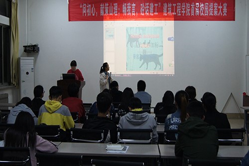 此次比赛分为ppt展示和答辩两个环节,每支队伍派选一名队员上场进行讲解和答辩,评委将对ppt质量、提案内容及提案可行性等方面进行打分。同学们对此次比赛有着极大的热情,积极参与,共有十余支队伍进入决赛。