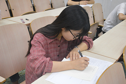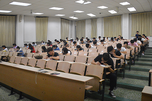 此次考试旨在使同学们及时调整心态、端正学习态度,为期末高数考试做好复习。考试开场前40分钟同学们已经陆陆续续到达考场,利用这段时间复习书中的公式以及定理,为接下来的考试做准备。本次考试采用全真模拟试题,共分为填空题、解答题和综合体三部分。考试铃声响起,监考人员严肃的将试卷分发到每个人的手中,拿到试卷的同学迅速进入到紧张的答题状态,考试期间,考场鸦雀无声,同学们冷静分析、认真作答,监考人员秉公无私、尽职尽责,努力维护好考场秩序。随着考试的进行,尽管有些准备不充分的同学流露出紧张的神态,但大多数同学依旧奋笔疾书,争分夺秒完成考试内容,随着题目顺序的递增,题目的难度也在逐渐递增,准备充足的同学依然毫无畏惧,教室里只有沙沙的写字声。部分同学对试卷进行反复检查后,进行了提前离场,随着考试结束铃声的响起,剩余的同学们也停止了作答,监考人员将试卷收齐整理好后,同学们有序离开考场。