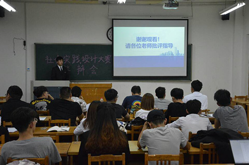 据悉,此次答辩会分为项目展示与评委点评两个环节,每个团队有六分钟的答辩时间,答辩完成后,评委将根据现场情况,从科学性、思想性、学术性、创新性四方面进行综合评分。答辩会正式开始之前,黄德香向同学们介绍了本次答辩会的流程,说明评优规则,并宣布 答辩会正式开始。紧张激烈的答辩环节随即开始,28个团队的团队代表按抽签顺序依次上台答辩,通过PPT展示的形式进行自己团队的社会实践项目讲解。这28个团队有的选材新颖,角度新鲜,主题突出,有的则还需再结合实际,对选题再精细化。答辩结束后,各位评委从各个团队的项目前景、项目基本内容、答辩的现场呈现情况、PPT展示的模块形式、切入点的角度等方面针对性地进行了点评,评委们对各个团队项目的优点提出表扬,对缺点及时指出并加以改正,帮助各个团队理清实践思路,促进同学们更好地进行接下来的暑期实践。