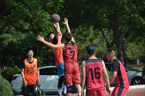 天气的炎热挡不住运动员们的热情,运动员们早早到场,在场地中进行热身运动。随着裁判一声哨响,比赛正式开始,双方队员灵巧穿插,活力十足,给予了观众很强的视觉冲击。建工篮球队开始就展现出进攻性,他们凭借着连续突破与三分球取得了较大优势,但外院篮球队也体现出他们极高的战术素养,他们通过犀利的防守反击和精妙的配合不断拿分,使双方比分差距不断缩小,不断的交替上升,时间一分一秒的过去,上半场结束,建工队占领了一定的优势。下半场开始前双方均进行了战术调整,建工队发起猛烈进攻,并取得了良好的效果。队员们个个雄姿英发,在球场上你争我夺,一次次地投球、抢球,动作潇洒。他们全力以赴,用心防守、有力阻挡,越战越勇,显示了他们极佳的心理素质。随着体力的消耗,两队迅速的进行状态调整,把球场上的精彩展现给每一个人。随着终场比赛的哨声响起,最终,比分定格在43:34,建工队取得了此次比赛的胜利。在这场比赛中,双方队伍都本着 “输球不输斗志,输球不输友谊”的比赛原则,竭尽全力坚持到最后一秒,将运动精神发挥的淋漓尽致。