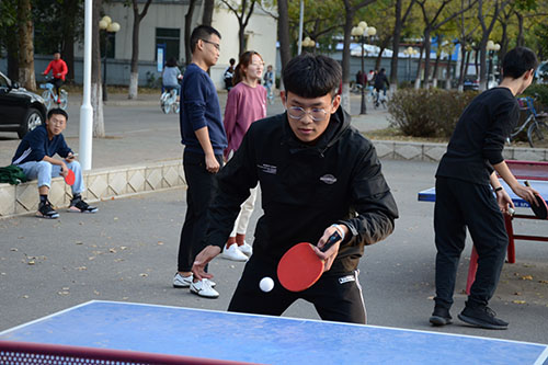 此次比赛共设男子单打、女子单打、男女混合双打三个项目,参赛队员可兼报单打和混合双打比赛。比赛采用11分制,三局两胜决出胜负,比赛开始之前,双方选手采用猜拳的方式,胜者有权选择首发球和场地。比赛报名同学通过抽签决定所在小组,每三人一个小组,组内进行单循环比赛,组内单循环赛胜利两场者晋级下一轮。在所有的比赛结束后,负责人根据比赛情况派出名次,男女各取前六名进行颁奖。比赛为期两天,选手们打得如火如荼,每个选手们以饱满的热情和高度的积极性全身心的投入到此次比赛中,充分发挥了敢打敢拼的进取精神,每个人都想在比赛中取得一个好成绩。
