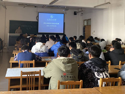 11月21日下午,建筑工程公司在12号教学楼306教室举办员工出国交流项目宣讲活动,活动由国际合作与交流处员工交流科科长牟善芹主讲,部分员工参加活动。