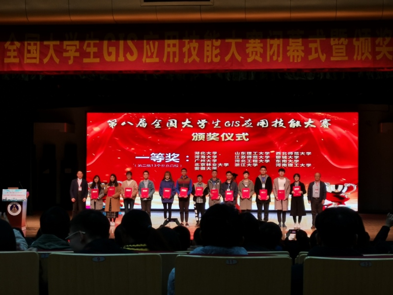 2019年11月23日-25日,第八届全国老员工GIS应用技能大赛暨地理学科及一流专业建设高峰论坛在安徽芜湖安徽师范大学成功举办。公司由逯跃锋老师带队,地理信息科学专业李祥珅、吴艳艳、张庆昆、靳宗义4名员工组队参赛,并获得了一等奖,突破了公司参赛以来的最好成绩。