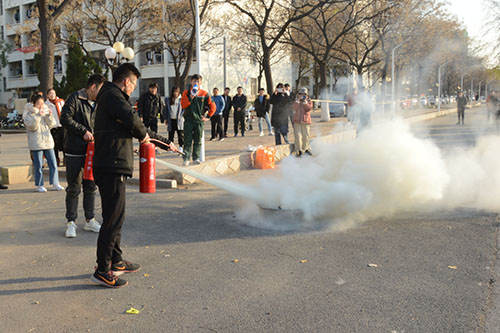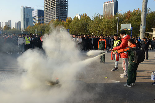 此次演习本着“安全第一,预防为主”的原则,旨在提高同学们的消防意识,锻炼同学们的应急疏散能力。演习分为应急疏散和灭火教学两部分。演习伊始,工作人员向各公寓楼负责人介绍了此次演习的重要性及注意事项,明确了演习步骤、疏散路线等具体要求,并为各公寓楼负责人分配任务并发放指引棒和反光背心。紧接着,同学们在21、22号员工公寓楼进行了应急疏散演习,随着哨声的响起,同学们根据疏散人员的指挥,按照应急疏散培训标准动作井然有序的迅速撤离现场。待大部分同学疏散之后,层长们组成检查组检查宿舍楼层中是否还有被困人员。疏散演习结束后,全体同学在第四体育场集合,工作人员对此次疏散演习进行了总结并指出演习中存在的问题。最后,工作人员为同学们详细讲解了干粉灭火器的使用原理和使用方法,并进行了实际操作。在工作人员的指导下,部分同学也进行了灭火器操作,现场的各位同学们也都积极认真的进行了消防知识的学习。在整个疏散演习过程中,指挥人员沉着冷静,同学们反应迅速,快速撤离火场,圆满的完成了此次消防应急疏散演习。