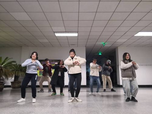 活动伊始,曹慧敏干事带领大家观看了祖海的歌曲《好运来》的舞蹈,观看完舞蹈,成员们已经跃跃欲试想要开始跳舞了。紧接着,曹慧敏将动作分解,一步一步地教给成员们,从眼神到面部表情,从手势到肢体动作,每一步曹慧敏教得都很认真;成员们紧跟领舞者的步伐,学得很仔细,如果哪里不太明白是如何跳的,也会及时询问,争取能够做好每一个动作。随后,梦想文艺社上一届团长来到大厅,曹慧敏干事就邀请他进入队伍,和同学们一起跳舞,活动氛围逐渐热闹起来,跳舞环节至此结束。最后,刘恣彤部长为大家介绍了举办本次周末舞会的目的,为以后带领梦想文艺社会员跳舞、让他们感受到社内活跃欢快的气氛打好基础。然后,社长与成员们讨论了下次团建的相关事宜,建议大家积极参与,成员之间多多交流、互相了解,并暂定于12月1号在图书馆南草坪举办团建活动。周末舞会至此结束。