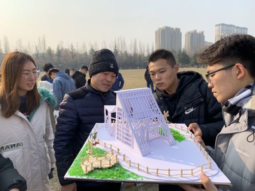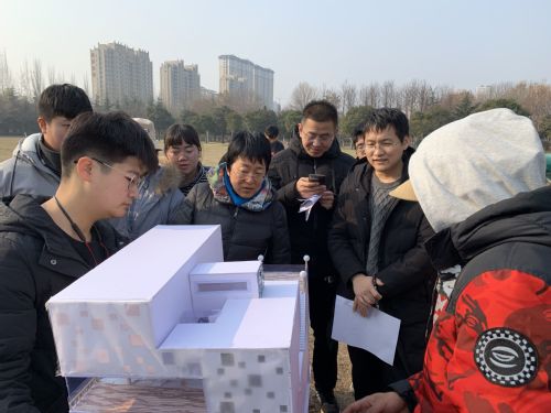 10;30左右,各组参赛人员已将作品放到指定位置,准备展示。接下来由主持人介绍活动流程并宣布比赛开始。各小组人员按序号依次介绍作品设计理念,四位评委老师对每份作品的实用性等问题进行提问,分别提出修改建议并为作品评分。过程中参赛同学大胆说出想法,认真听取建议,纷纷表示“明年的比赛会做的更好”。活动结束后,参赛选手、工作人员与评委老师们合影留念。