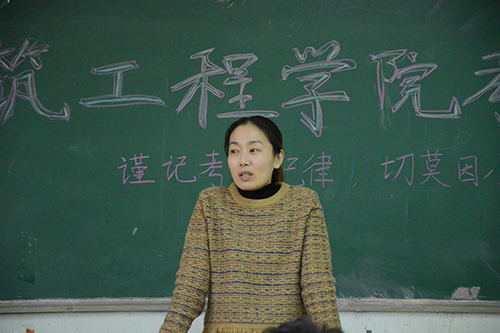 为进一步深化学风建设,严肃考风考纪,督促各班同学做好期末复习工作,12月10日下午,建筑工程公司于12号教学楼301教室举办期末考前动员会议。此次会议由建筑工程公司员工工作办公室主任、团总支书记张燕丽主讲,各班班长参加。